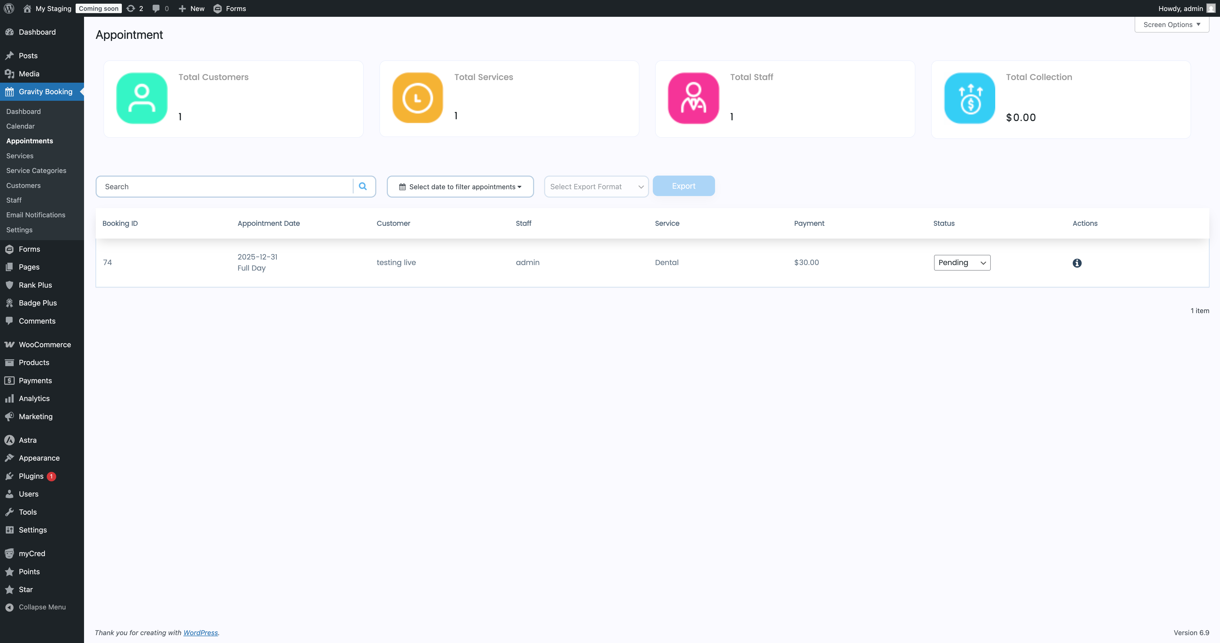 Yes. Gravity Booking Pro allows admins to book appointments directly from the WordPress dashboard.
