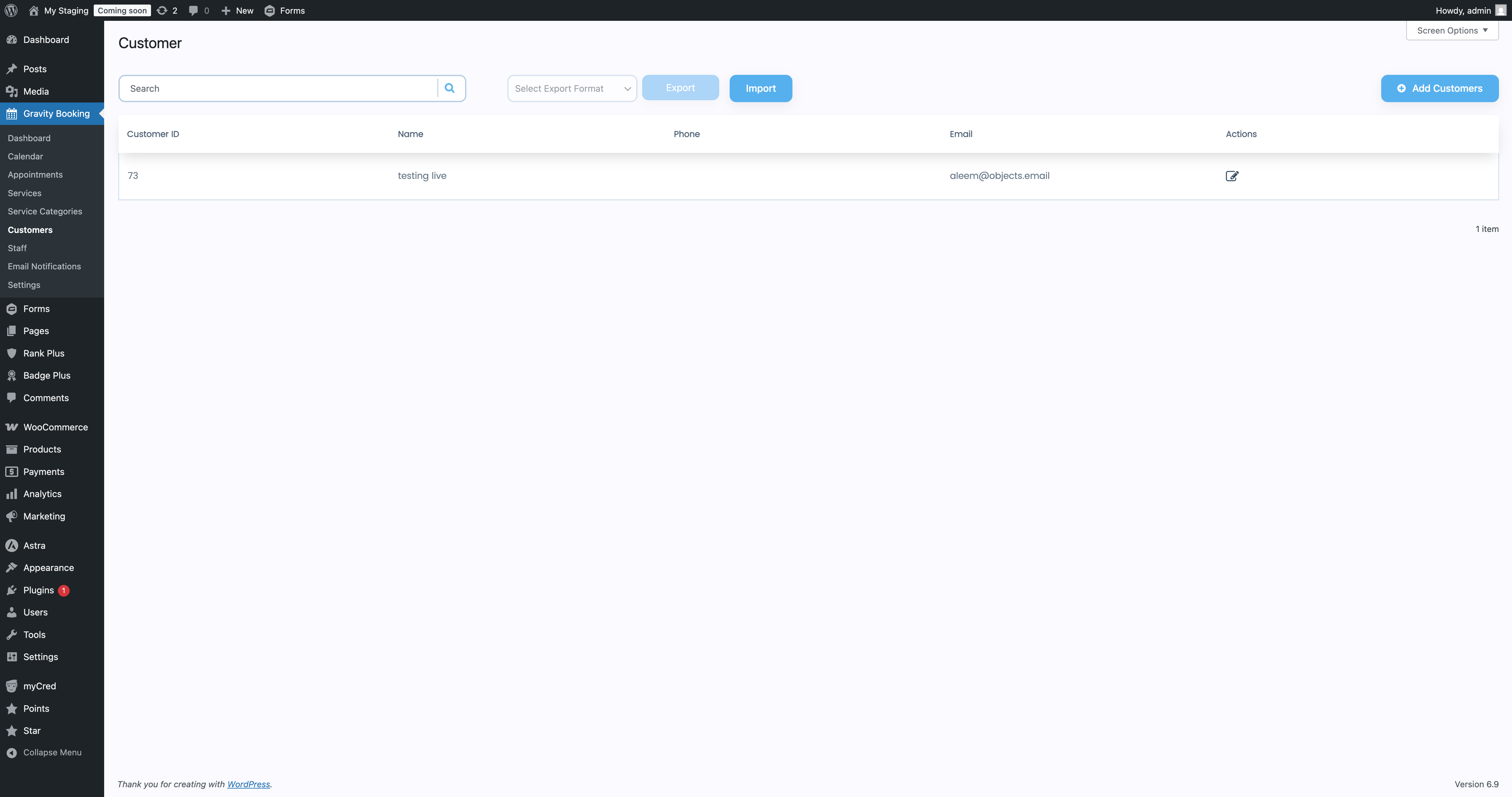 - Export customers data